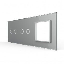 Panou intrerupator dublu+dublu+priza sticla gri Liv